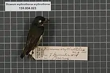 1. BirdLife International (2016). "Dicaeum erythrothorax". IUCN Red List of Threatened Species. 2016: e.T103776345A94538261. doi:10.2305/IUCN.UK.2016-3.RLTS.T103776345A94538261.en. Retrieved 13 November 2021.