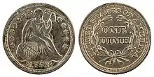 10. 1 2 3 4 History of the Seated Liberty Dime (Variety I) Archived 2011-08-18 at the Wayback Machine Retrieved on 2010-2-9