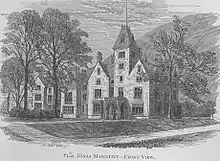 From around 1500, the Lordship of Mawddwy was held by members of the Mytton family.[9] In 1734, John Mytton, then the Lord of Mawddwy, donated a black marble font to the church at Mallwyd. The family held the lordship until 1831, when it was sold by "Mad Jack" Mytton to John Bird. In 1856. Bird in turn sold the title and the substantial estate in and around Dinas Mawddwy to Sir Edmund Buckley, a rich industrialist from Ardwick near Manchester.[10] Buckley passed the title and estate to his son Sir Edmund Buckley, 1st Baronet in 1864. In turn they passed to Sir Edmund Buckley, 2nd Baronet in 1910. Sir Edmund's son died fighting at Gallipoli in 1915, he died in 1919.