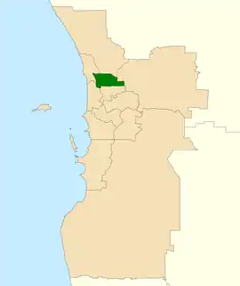 Cowan is an inner-northern Perth seat lying generally between Morley Drive and Hepburn Avenue, extending from the Mitchell Freeway in the west to the Tonkin Highway and Lord Street in the east.[1]