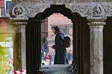 Derrickson chose Nepal as a location to feature an "Eastern city" that would not be familiar to most audiences. After scouting and deciding on locations in the country, many of those areas were destroyed by the April 2015 Nepal earthquake. Rather than choosing another country, Derrickson and Cumberbatch felt that bringing attention and tourism to Nepal following the event "was all the more reason to shoot there".[144] Cargill said that the location of Kamar-Taj was shifted from Tibet to Nepal to prevent censorship by the Chinese government.[145][146] Cumberbatch said that shooting in Nepal was "absolutely vital to this film, I think not least because it's so based in something that is exotic. It was a magical way to start the shoot. It's important to a film like this—which has a profound gearshift into a spiritual and otherworldly dimension—that the portal for that be in a place that actually happens in itself to be incredibly spiritual and marvelous."[147] The eventual filming locations around the Kathmandu Valley included the Pashupatinath and Swayambhunath Temples;[148] Thamel and New Road in Kathmandu;[149] and the Patan Durbar Square in Patan.[150][151]