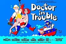 Doctor in Trouble is a 1970 British comedy film, the seventh and last film in the Doctor series. It was directed by Ralph Thomas and stars Leslie Phillips as a doctor who gets accidentally trapped on an outgoing cruise ship while it begins a round the world trip. The cast was rounded out by a number of British comedy actors including James Robertson Justice, Harry Secombe and Angela Scoular. It was based on the 1961 novel Doctor on Toast by Richard Gordon.