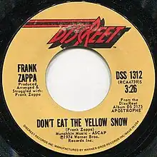 - ↑ "Frank Zappa - Don't Eat The Yellow Snow / Cosmik Debris (Vinyl)". Discogs.com. August 1974. Retrieved 2016-10-09.