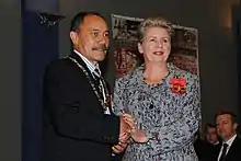 ![]() de Pont received the Insignia of an Officer of the New Zealand Order of Merit for services to fashion | |