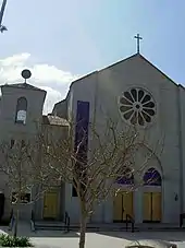 Mission San Gabriel Arcángel was initially founded on September 8, 1771, near settlements of the Tongva people. It was located in the Whittier Narrows on a bluff overlooking the Rio Hondo, near the intersection of today's San Gabriel Blvd and Lincoln Avenue.[6] After five years, flooding forced the relocation of the mission to its present site in San Gabriel.[7]