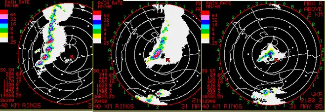 - ↑ Fabry, Frédéric (August 2010). "Radial velocity CAPPI". Examples of remote-sensed data by instrument. J.S. Marshall Radar Observatory. Archived from the original on 20 June 2017. Retrieved 14 June 2010.