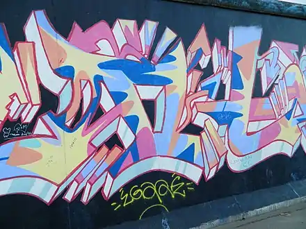 It is possibly the largest and longest-lasting open air gallery in the world. Paintings from Jürgen Grosse alias INDIANO, Dimitri Vrubel, Siegfrid Santoni, Bodo Sperling, Kasra Alavi, Kani Alavi, Jim Avignon, Thierry Noir, Ingeborg Blumenthal, Ignasi Blanch i Gisbert, Kim Prisu, Hervé Morlay VR and others have followed.