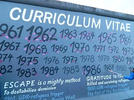 - ↑ East Side Gallery: The Spontaneous Memorial. In: Sites of Unity (Haus der Geschichte), 2022.