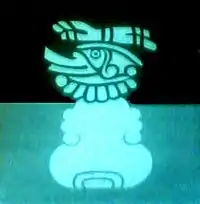 The glyph for Ecatepec. Its name is represented by a hill (tepetl) and the face of the wind god (Ehecatl).