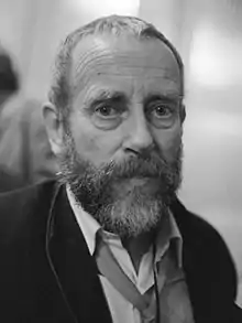 He then traveled extensively, to Bagara[26] 1957 (now in Central African Republic), and to Tokyo and Hong Kong in 1959 to 1960, with Gerda van der Veen (1935–2006) also a photographer, whom he married (25 September 1957). He filmed for Welkom In Het Leven, Lieve Kleine[27] the homebirth of their second child, Daan, in the old-fashioned, working-class Nieuwmarkt in Amsterdam.[28] This is an early example of cinema production with a small shoulder-mounted camera synced with sound.[29] He continued in motion imagery his subjective stance[30] in which the camera operator interacts live from behind the camera with subject, obviating the need for the intrusion of an interviewer or presenter, and recording the immediate experience.[31] His style was immediately influential on the television of Hans Keller, Roelof Kiers and others.