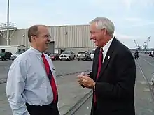 A Republican, he was first elected to the Georgia House of Representatives in 1992, giving up his seat after one term to run for the state senate.[2] He was reelected to the state senate in 1996.[3] His colleagues voted him as the Minority Leader in 1998 and served until 2003. In 2003 following the 2002 election of the first Republican Governor in over 130 years, several Democrats changed parties and Republicans gained the state senate majority. Eric was elected as the Senate President Pro Tempore. The Republican majority stripped Democratic Lieutenant Governor Mark Taylor of most of his powers, so for all intents and purposes, Johnson served as lieutenant governor.[4] The power of the lieutenant governor was restored back to current lieutenant governor Casey Cagle, a Republican, in 2007.