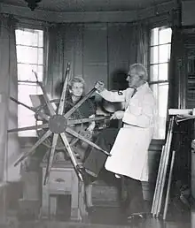 Gabain's WAAC commissions allowed her to explore her interest in the innovative medical techniques which were being developed during the war. In 1944, as well as depicting Sir Alexander Fleming working in the laboratory where he had discovered penicillin,[18] Gabain also recorded, in A Child Bomb-Victim Receiving Penicillin Treatment, a young girl being treated with the drug.[19][20] She recorded pioneering treatments of burns victims, including the introduction of a new continuous irrigation method.[14]