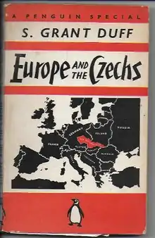 Europe and the Czechs was an influential and widely read best-selling Penguin Special written by journalist Shiela Grant Duff in 1938 during the appeasement of World War II .[1] Her prominence as a journalist was established with this publication. It was published on the day British prime minister Neville Chamberlain returned from Munich in which he pressured Czechoslovakia to cede territory to Nazi Germany, and it was distributed to every member of parliament. In her book she defended the Czech nation and criticized British policy, claiming that war could be an option if it were necessary to confront Hitler's aggression in Czechoslovakia. She argued against the policy of "peace at almost any price".