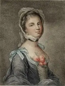 One French biography of her life claimed she was known to be one of the most beautiful women in all of Europe. She emigrated to London in 1746, speaking little English. It is rumored that the Empress sent her there as a banishment, after noticing the Emperor taking too great a fancy to her for her beauty, though this story is often thought unlikely.