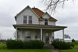 The Evan F. Ellis Farmhouse is an historic residence located north of Bussey, Iowa, United States. Evan, his wife Bertha, and their two daughters moved from Illinois and settled on the 120-acre (49 ha) farm they bought in Marion County, Iowa in 1909. He built this Sears, Roebuck & Co. "Honor Bilt Modern Homes" pre-cut house in 1913. It was unusual for such a house to be built in a rural area because all the parts would have to be transported a longer distance.[2] The two-story frame house features a full-length front porch, projecting wall dormers, and it is capped with a hipped roof. After Evan's (1949) and Bertha's (1959) deaths, their daughter Mary continued to live in the house and run the farm until her death in 1974. While the family continued to own the farm, the house was rented to tenants until 1983 when Bonnie Vanderlinden Noah, Evan and Bertha's granddaughter, and her husband Jack began restoring the house for them to live in. The house was listed on the National Register of Historic Places in 1985.[1]