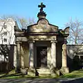 The Evangelical Cemetery of the Augsburg Confession was consecrated on 2 May 1792, designed by the architect Szymon Bogumił Zug. More than 100,000 people have been buried at the cemetery since its opening in 1792. During the Kościuszko Uprising of 1794 and during World War II, intense fighting took place at the cemetery. Worth seeing is the neoclassical Halpert family chapel (1835), which serves the Lutheran community. The chapel was rebuilt in 1975, however, many tombstones are still destroyed or in poor condition. As in the Roman Catholic Powązki Cemetery, a committee for the restoration of the cemetery has been set up, and collects money on All Saint's Day for the treasures of the burial ground to be returned to their former glory. [1]