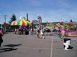The Snohomish County Fair moved to Granite Falls in 1922 and was later replaced by community fairs, named the Cavalcade of Valleys, in areas around Monroe during the Great Depression and World War II. The county fair was moved permanently to Monroe, opening at the modern-day fairgrounds on September 5, 1946, and renaming itself to the Evergreen State Fair in 1949.[1][2] A 4,000-seat sports arena was completed in 1970, coinciding with a longer ten-day run for the fair.[3]