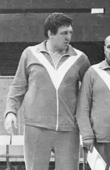 Yevgeny Timofeyevich Artyukhin (Russian: Евгений Тимофеевич Артюхин, 17 June 1949 – 12 July 2008) was a Soviet heavyweight Greco-Roman wrestler. He won a world title in 1983, as well as three bronze medals at the world and European championships in 1981–83. He missed the 1984 Summer Olympics due to their boycott by the Soviet Union. After retiring from senior competitions, he worked as a coach, bringing his son Sergei to an international level in Greco-Roman wrestling. He also continued competing in the masters category and won the Russian heavyweight title in 1995.[1][2]