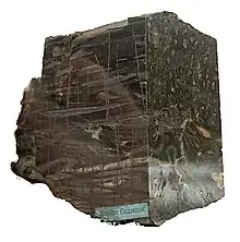 Archaeopteris forests were soon supplemented by arborescent lycopods, in the form of Lepidodendrales, which exceeded 50m in height and 2m across at the base. These arborescent lycopods rose to dominate Late Devonian and Carboniferous forests that gave rise to coal deposits.[89] Lepidodendrales differ from modern trees in exhibiting determinate growth: after building up a reserve of nutrients at a lower height, the plants would "bolt" as a single trunk to a genetically determined height, branch at that level, spread their spores and die.[90] They consisted of "cheap" wood to allow their rapid growth, with at least half of their stems comprising a pith-filled cavity.[1] Their wood was also generated by a unifacial vascular cambium – it did not produce new phloem, meaning that the trunks could not grow wider over time.