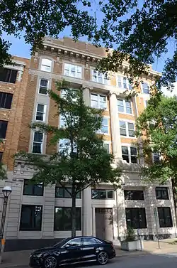 The Exchange Bank Building is a historic commercial building at 423 Main Street in Little Rock, Arkansas. It is a five-story masonry structure, built in 1921 out of reinforced concrete, brick, limestone, and granite. It has Classical Revival, with its main facade dominated by massive engaged fluted Doric columns. It was designed by the noted Arkansas architectural firm of Thompson & Harding, and is considered one of its best commercial designs.[2]
