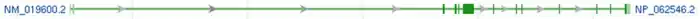 Diagram of the FAM214A gene including introns and exons on chromosome 15[9]