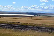 Even though the federal government opened Montana to homesteading in 1862, this area was not initially settled.[5] Given Montana's vast and dry landscape, irrigation was necessary. In 1902 irrigation projects began, which did lead to increased grain production.[6] Then in 1903 the Bureau of Reclamation conducted a survey of the area.[7] The potential of the Sun River Valley was deemed so great it was promoted as “the greatest farming country under the dome of Heaven.”[7] In 1909 homestead size was increased from 160 acres to 320 acres. This change began drawing many more settlers to Montana.[5]