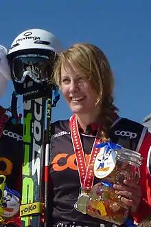 She returned to competition aged 22 and dominated the 2012–13 season, winning the first three races of the year, taking four victories, on the podium in six out of the ten races, and won the Crystal Globe as the world's top-ranked ski cross racer. To top her return to ski cross, she took the gold medal at the World Championships in Voss, Norway.[7]