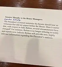 - ↑ Edmondson, Catie (21 January 2020). "Day in Impeachment: Senate Adopts Trial Rules". The New York Times. Retrieved 18 December 2022.