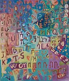 Ficre Ghebreyesus (March 21, 1962 – April 4, 2012) was an Eritrean-American artist who made colorful paintings in a series of styles including representational, abstract, and a surreal combination of the two. His paintings show influences of European and American art as well as the culture and scenery of his native country. Many are small works; others as much as mural-sized. One critic saw his work as "dynamic, complicated and textually rich." The critic added that the paintings, "form at the nexus of culture, history and memory, sprawling across the canvas, and flowing out into this and other worlds."[1] Ghebreyesus showed infrequently in commercial galleries and his work achieved widespread recognition only after its appearance in posthumous exhibitions.