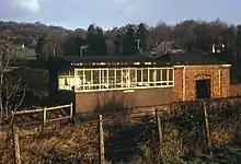 More survives of the second station – the main building and goods shed on the eastbound platform are still in situ, albeit boarded-up and crumbling, at the end of a private residential road.[1] The building on the westbound platform has been demolished, the platforms have been removed and the running lines slewed closer to the remaining station buildings. The relief line to the east has been removed. The fuel sidings were disconnected and the adjacent crossover points removed in February 2004.[6][7]