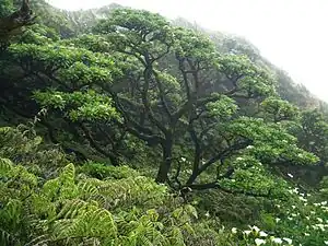 The flora of Saint Helena, an isolated island in the South Atlantic Ocean, is exceptional in its high level of endemism and the severe threats facing the survival of the flora.[1] In phytogeography, it is in the phytochorion St. Helena and Ascension Region of the African Subkingdom, in the Paleotropical Kingdom.