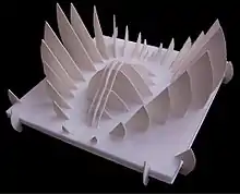 Foamcore, foam board, or paper-faced foam board is a lightweight and easily cut material used for mounting of photographic prints, as backing for picture framing, for making scale models, and in painting. It consists of a board of polystyrene foam clad with an outer facing of paper on either side, typically white clay-coated paper or brown kraft paper.