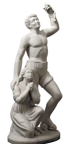 Forever Free is a sculpture by the American artist Edmonia Lewis. Created in 1867, it commemorates the abolition of slavery in the United States two years earlier. The work differs from many other depictions of abolition from the period by showing the Black man standing and unschackled rather than bound or kneeling.[1] Scholars have frequently puzzled over Lewis's decision to Europeanize the features of the female figure.[2] At least one scholar has suggested that the choice may have been an acknowledgment of the varied appearance and heritage of African Americans such as Lewis herself, who was of both African and Native American descent.[3]