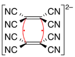 Tetracyanoethylene forms a dianionic dimer in which the two alkenes are joined face-to-face by a rectangular four-center two-electron bond.[4] Various solid salts of this dianion have been studied to determine bond strengths and vibrational spectroscopic details.[5]