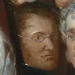 In the painting of the 1840 Anti-Slavery convention there is a figure to the left described as "M.M.Isambert" and in the centre is John Scoble the secretary of the British Anti-Slavery group who organised the convention. Francois Isambert had been in correspondence with Scoble and he was an active figure in trying to free the French slaves.[2]