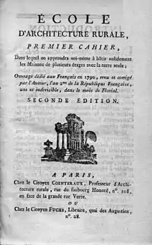 - Architecture périodique, ou notice des travaux et approvisionnemens que chacun peut faire, a peu de frais, chaque mois et chaque année, soit pour améliorer ses fonds, soit pour construire toutes sortes de batisses, soit pour multiplier les engrais (PDF). Paris: Bureau de l'école d'architecture rurale. 1792. Retrieved 13 February 2019.