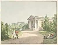 Close to the Swiss Cottage stands the Pheasantry (Da. Fasangården) which was designed by J.C. Krieger and built in 1723. As the name suggests, the building was originally built in connection with a pheasantry which raised pheasants for the royal household. When the park was redesigned around 1800, there were plans to tear down the house but instead it was turned into a residence for the king's private secretary, P.C. Jessen, who had already used it during summer since 1798.[9] The building was adapted in 1828 by Jørgen Hansen Koch. It served as summer residence for Adam Oehlenschläger and his family from 1842 to 1850.[10] It was carefully restored in 2019–2020 and is open tp the public as a restaurant.[11]