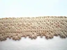 Freehand lace is bobbin lace worked directly on the fabric of the lace pillow without using a pricked pattern. Very few pins are needed (in most cases, only at the two edges.)[1]