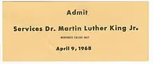 An admission ticket to satellite funeral services for King at Morehouse College.