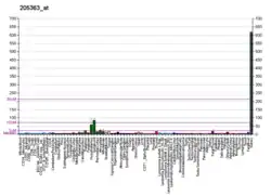 - ↑ Dawany NB, Dampier WN, Tozeren A (Jun 2011). "Large-scale integration of microarray data reveals genes and pathways common to multiple cancer types". International Journal of Cancer. 128 (12): 2881–91. doi:10.1002/ijc.25854. PMID 21165954. S2CID 24740881.