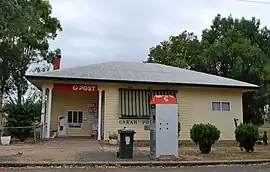 Facilities in the town include a post office, primary school, police station, tennis courts, grain silo, CWA hall, town hall, pre-school, corner shop, pub, race course, small petrol bowser, Catholic church and a Presbyterian Church. Local activities include agriculture.