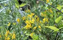 Genista corsica is a plant endemic to Corsica and Sardinia where it is associated with sunny open landscapes and poor stony soil. It is a common constituent of garrigue and maquis communities.
