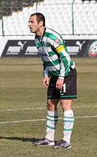 Georgi Iliev (Bulgarian: Георги Илиев; 5 September 1981) is a Bulgarian former professional footballer who played as a midfielder from 2000 to 2019, notably for Cherno More Varna, where he made over 350 appearances for the club in all competitions.[2] Iliev is the second highest scorer for Cherno More in the Bulgarian top league with 71 goals.