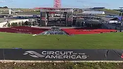 The Germania Insurance Amphitheater (originally the Tower Amphitheater, then Austin360 Amphitheater) called for sponsorship reasons, is an outdoor amphitheatre that is part of the Circuit of the Americas (COTA) located in Austin, Texas, USA. The venue opened in November 2012 with a capacity of 14,000. There are 6,700 fixed reserved seats.[4] Another 1,700 seats can be configured on the stage-front floor or alternately configured for standing room for 2,300. The remaining general admission spots are on a sloping grass area behind the reserved seats.[5] The Amphitheater won the Best New Major Concert Venue Award by Pollstar in 2013.[6] It has been recognized as a Modern Steel Construction in 2015 by the American Institute of Steel Construction winning the 2015 IDEAS2 Awards.[7][8]
