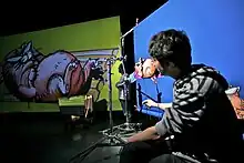 Over the years, Giants Are Small has developed an ongoing relationship with New York Philharmonic's Music Director and conductor Alan Gilbert, which has led to five collaborations Le Grand Macabre, The Cunning Little Vixen, A Dancer's Dream, Gloria: A Pig Tale, and Petrushka).[34] The company has also worked on an ongoing basis with lighting designer Clifton Taylor, set designer Skip Mercier,[35] kinetic sculptor Chris Fitch, projection designer Marty Brinkerhoff [36] and filmmaker Andrei Severny. Giants Are Small collaborated with costume designer Catherine Zuber for their production of Le Grand Macabre,[37] and choreographer Karole Armitage for The Cunning Little Vixen and A Dancer's Dream.[38] Artists with whom Giants Are Small have collaborated with include dancer Sara Mearns, rock musicians Alice Cooper and Campino, conductor Alexander Shelley, and music producer Sid McLauchlan.[39]