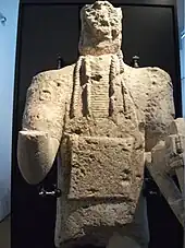 Depending on the different hypotheses, the dating of the Kolossoi – the name that archaeologist Giovanni Lilliu gave to the statues[6] – varies between the 11th and the 8th century BC.[7] If this is further confirmed by archaeologists, they would be the most ancient anthropomorphic sculptures of the Mediterranean area, after the Egyptian statues, preceding the kouroi of ancient Greece.[8]