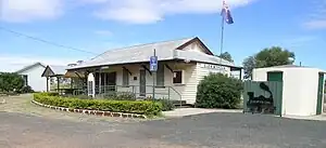 The "End of The Line" Museum is housed in the former Glenmorgan railway station in Sybil Street (27°14′58″S 149°40′37″E / 27.2494°S 149.6769°E / -27.2494; 149.6769 (Glenmorgan railway station / End of The Line Museum)). It has a collection of railway memorabilia.[15] There is a memorial to Colin and Joyce McKillop, who were original and life members of the Glenmorgan Restoration Committee which established the museum.[29] Free camping is available behind the museum.[30]