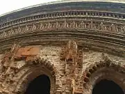 The terracotta plaques on the front arches of the temple depict the battle between the army of Rama and Ravana, which are now damaged or destroyed. At that time, the facade decorations served as visual illustrations of the popular religious texts Ramayana and Mahabharata.[6]
