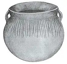 Huber ware is common at the Huber,[8] Anker,[6] Oak Forest[9][10] and Hoxie Farm sites[8] near Chicago, Illinois; and at Moccasin Bluff[11] and Schwerdt[12] in southwestern Michigan where it is part of the Berrien Phase. At the Oak Forest site, this ware has been associated with early Historic artifacts, which indicates the pottery was still being made at the time of European contact.[9][10] The exact cultural affiliation has not been determined but it has been suggested that the makers of this pottery may be the Miami or Potawatomi tribe.[11]