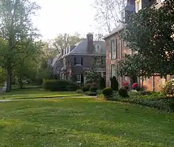 The company spared no expense on utilities, streets, drains and other infrastructure to create a modern and an attractive living destination for the Baltimore elite. The houses were designed by some of the most prominent Baltimore architects of the era, included Edward L. Palmer, Bayard Turnbull, John Russell Pope, W. D. Lamdin and Laurence Hall Fowler.[2] The houses were primarily built in brick or stone and were designed in the popular revival styles of the early 20th century. In 1913 the new neighborhood opened to much local praise. After the completed sales of all the houses in Guilford, the Company allocated the Guilford Association to maintain the integrity of the neighborhood. The Association upholds the covenants of the Deed and Agreement left by the Roland Park Company;[2][4] these included a racial covenant excluding African American property ownership until such covenants were deemed legally unenforceable.[5]